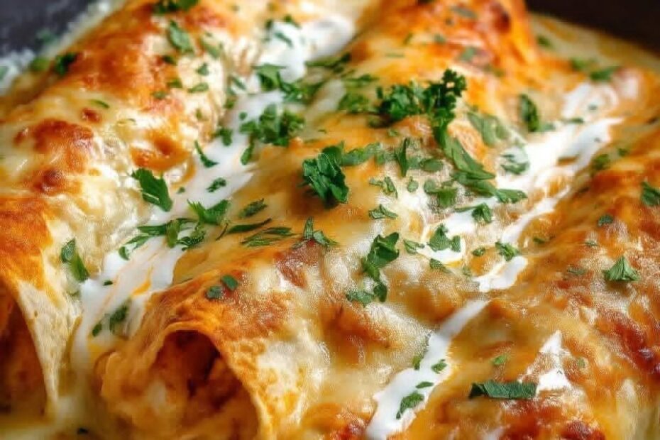 Délicieuses enchiladas au poulet avec sauce blanche à la crème